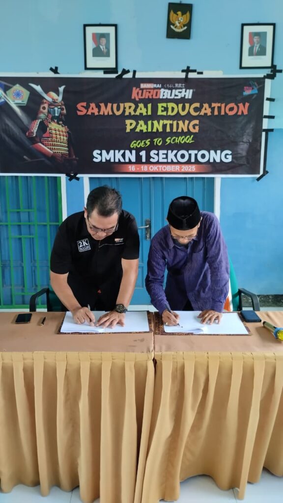 Sekotong, 18 Oktober 2025 — Kegiatan “Samurai Painting Goes to School” di SMK Negeri 1 Sekotong resmi berakhir hari ini dengan penuh antusiasme dan semangat kebersamaan. Setelah berlangsung selama tiga hari, sejak 16 Oktober 2025, kegiatan ditutup dengan penandatanganan nota kesepahaman (MoU) antara Samurai Paint Indonesia dan SMK Negeri 1 Sekotong sebagai bentuk komitmen kerja sama berkelanjutan di bidang pendidikan dan pelatihan teknik pengecatan otomotif.